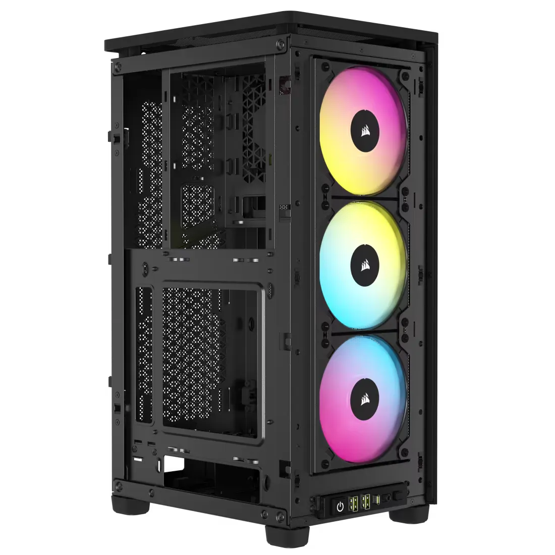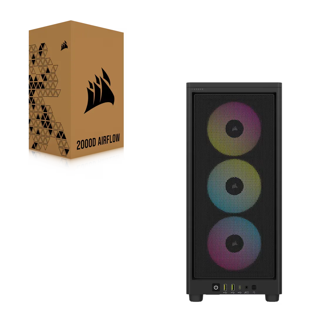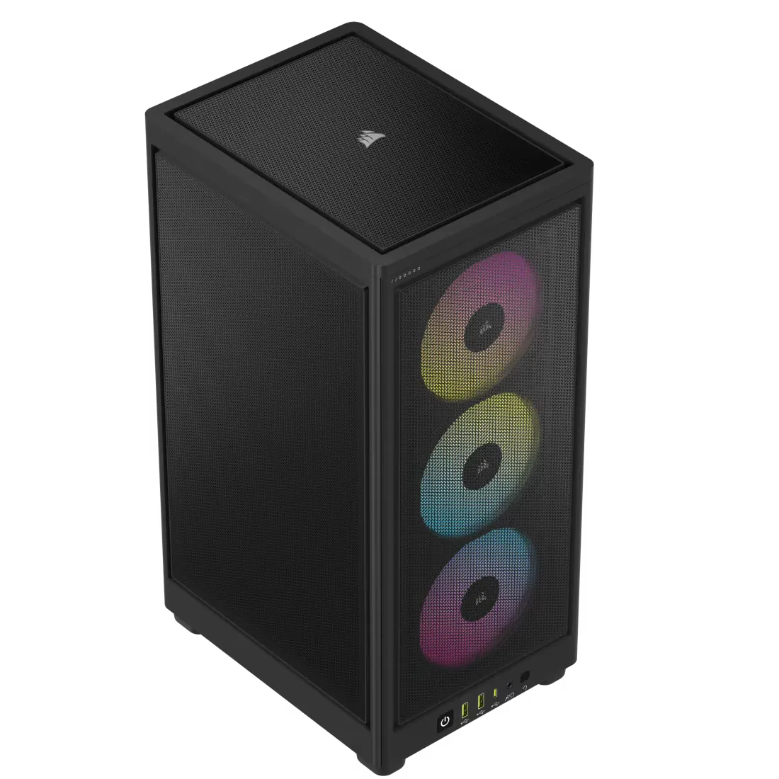 Le CORSAIR 2000D RGB AIRFLOW est un boîtier petit format Mini-ITX avec un éclairage RGB vif optimisé par le logiciel CORSAIR iCUE, et doté de performances de refroidissement phénoménales grâce aux panneaux maillés en acier à flux d’air élevé.